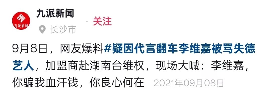 2020年,他被曝出收受粉丝赠送奢侈品及现金,引发舆论哗然,遭权威媒体点名批评,直指“饭圈失序乱象”。2021年,其所代言的“快乐方程式”奶茶品牌暴雷,超三百名加盟商集体维权,手持“李维嘉还我血汗钱”横幅围堵湖南广电大楼。