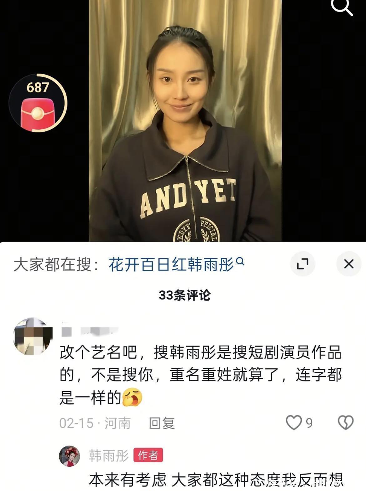 新人韩雨彤本打算在社交平台上搞个自我介绍,想和各路导演、网友们多熟悉熟悉,为自己的演艺之路打打基础。