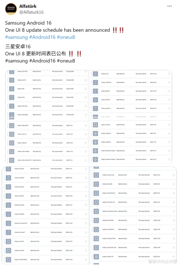 说到这里,三星One UI 8稳定版适配时间表也得到了曝光,涉及手机、平板、手表三大品类,旗舰机型优先。